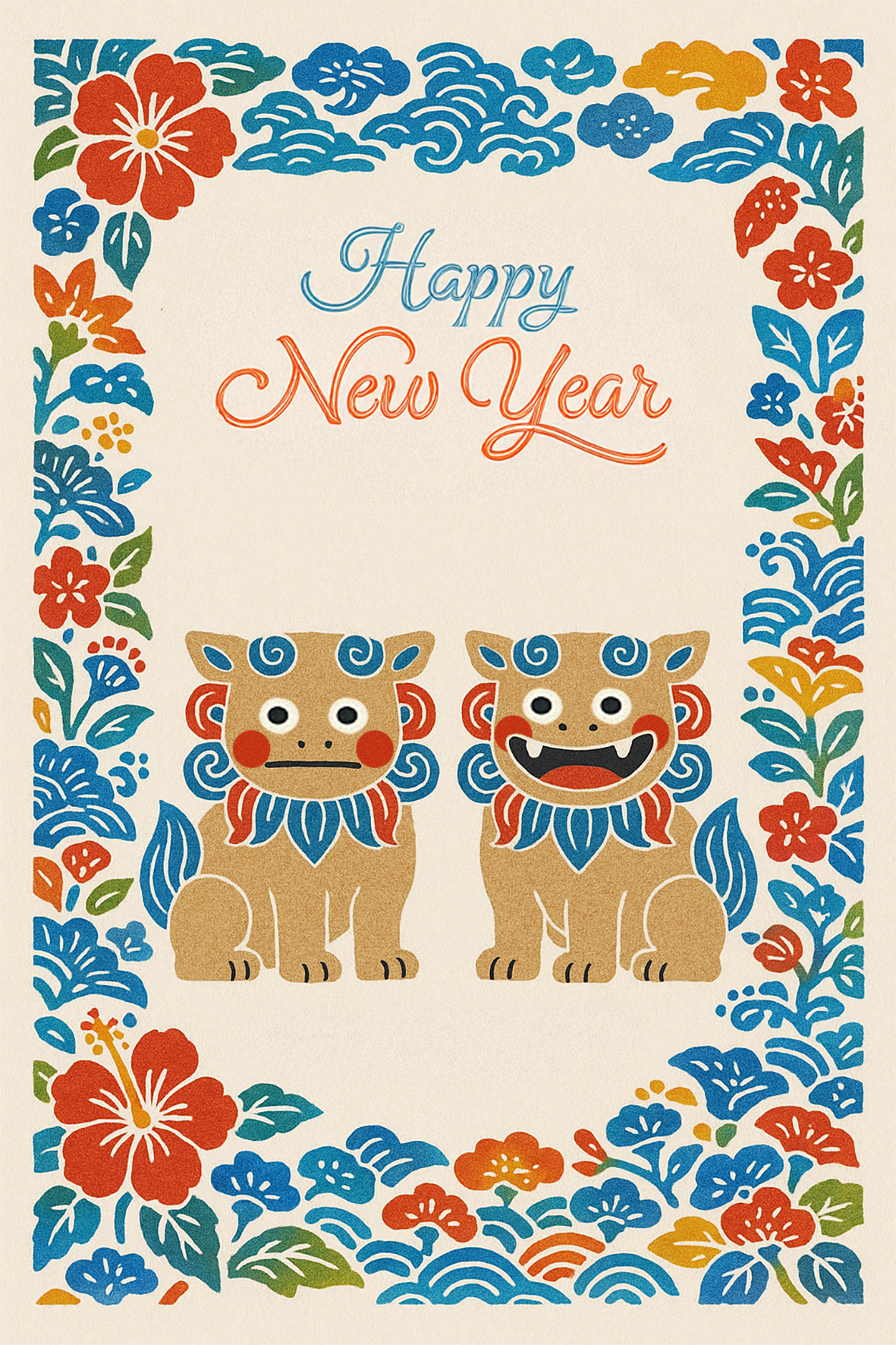 Happy new year 沖縄素材イラスト年賀状:シーサーと紅型 背景:芭蕉布風 背景:白 沖縄素材でも人気の「シーサー」と「紅型」を組み合わせた年賀状イラストです。 最近は年賀状を書く機会が減り、LINEで新年のご挨拶をする方も多いですよね。この画像をダウンロードして、LINEスタンプ代わりに使うのもおすすめです。 毎年使えるように「年月日」は入れていません。 ※タップすると大きな(印刷用)画像がダウンロードできます。※サムネイルサイズのまま使いたい場合は、そのまま保存してご利用ください。 2025年11月22日 投稿先 干支 ← 過去の投稿へ コメントを残す コメントをキャンセルメールアドレスが公開されることはありません。 * が付いている欄は必須項目ですコメント 名前 * メール * サイト 次回のコメントで使用するためブラウザーに自分の名前、メールアドレス、サイトを保存する。